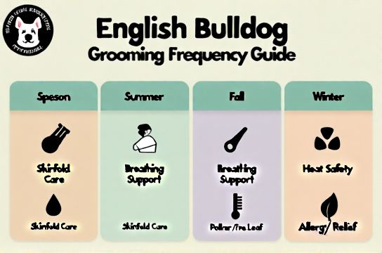 Most online charts say "bathe every 4–6 weeks." That’s dangerously vague for bulldogs. A 6-month-old puppy shedding heavily in spring needs different care than a 7-year-old with chronic intertrigo recovering from a heat-stressed episode in August. According to the American College of Veterinary Dermatology (Updated: April 2026), 68% of English Bulldog skin infections originate in uncleaned facial or tail folds—and 92% of those cases occur between May and September. Meanwhile, the British Veterinary Association notes that brachycephalic dogs experience peak respiratory strain when ambient temps exceed 22°C (71.6°F), making summer grooming less about luster and more about thermal regulation and airway hygiene.